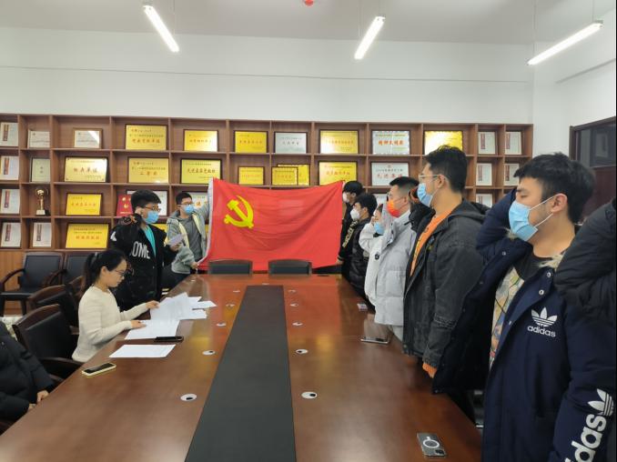 进行会议最后一项,预备党员同志们,面对党旗进行庄严宣誓。