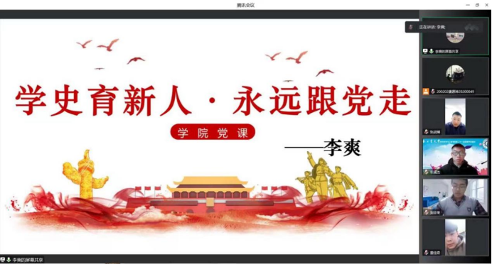 李爽老师就“建党一百年的四个历史时期”为主题开展党课培训,一百年来,中国共产党弘扬伟大建党精神,在长期奋斗中构建起中国共产党人的精神谱系,锤炼出鲜明的政治品格。并以各个时期的优秀人物的先进事迹教育同学们要积极发挥模范带头作用,不惜牺牲个人的一切,为共产主义奋斗终生,要有光明正大的作风和大公无私的气节,树立和保持共产党员的浩然之气。