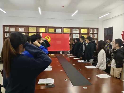 会议最后由宋雨泽、位明鑫同志带领新接收预备党员进行宣誓。