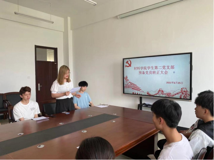 2021年6月25日EMC易倍员工第一党支部于材料楼425会议室召开转正大会。本次大会由党支部书记张晓君主持,对王鑫等9名同志是否能如期转正进行讨论和表决。