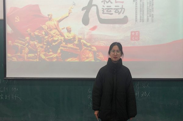 为纪念“一二·九”运动84周年,190206团支部全体成员于北湖主楼1224教室展开以“纪念一二九运动84周年”为主题的团日活动。一二·九运动又称为一二·九抗日救亡运动。 1935年12月9日,北平(北京)大中员工数千人举行了抗日救国示威游行,反对华北自治,反抗日本帝国主义,要求保全中国领土的完整,掀起全国抗日救国新高潮。北平员工的爱国行动,得到了全国员工的响应和全国人民的支持,形成了全国人民抗日民主运动的新高潮,推动了抗日民族统一战线的建立。此次团日活动由190206团支部书记孙雨竹主持,190206班所有团小组参加。