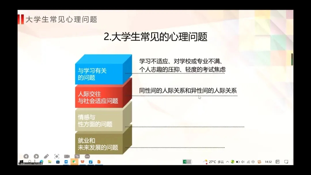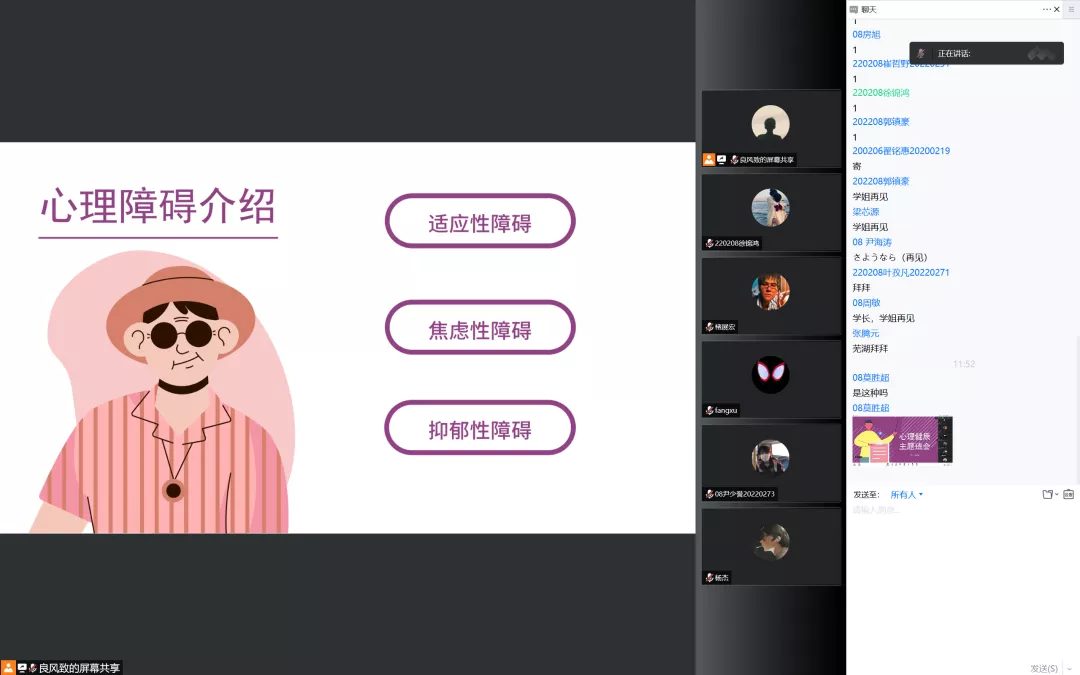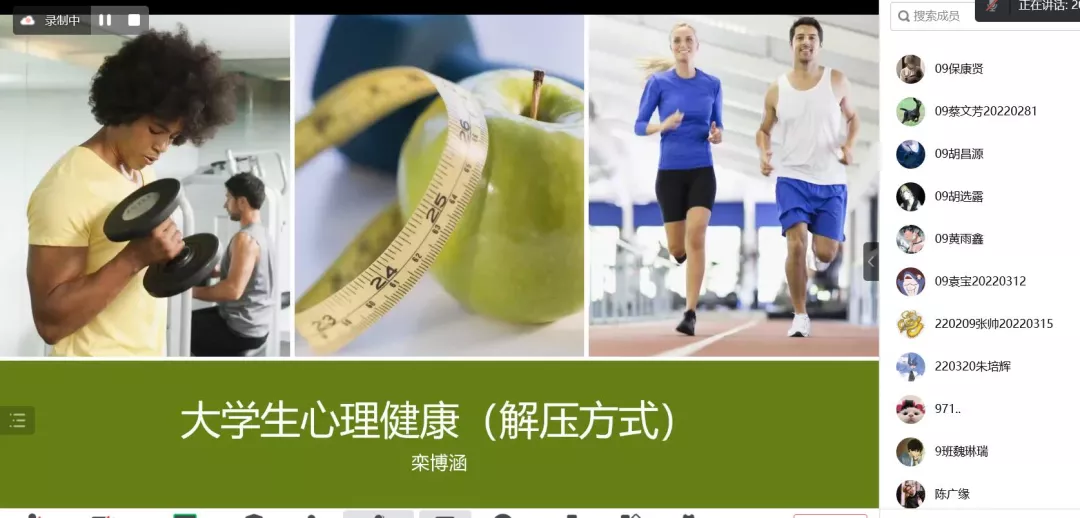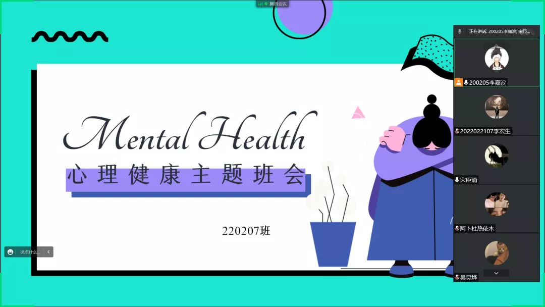 200207班学习委员栾博涵首先讲述关于心理健康知识,以及在大学期间遇到的心理压力并提出缓解压力的方法。