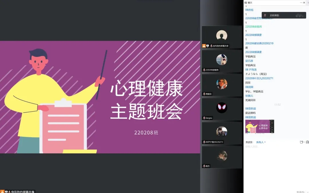 220201班通过本次班会让本班同学树立了正确的心理健康观念,也对同学们心理健康的共性问题提出了建议,表现了对每位同学心理健康的关心,并对一些不健康的心理问题做出指导,使其能更快的适应老员工活。