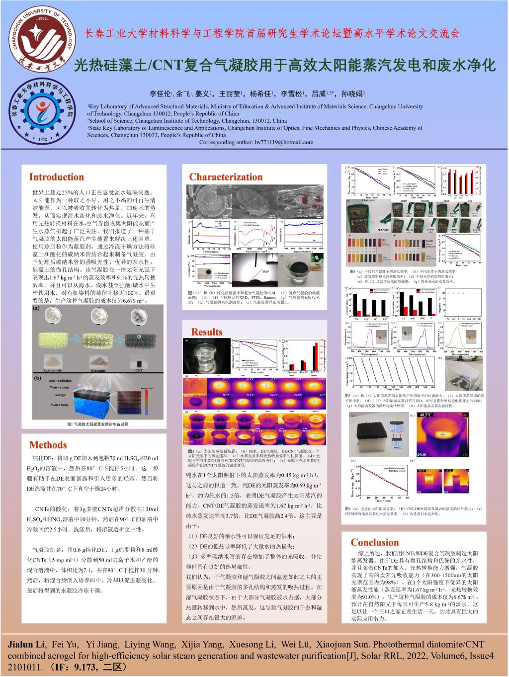 光热硅藻土CNT复合气凝胶用于高效太阳能蒸汽发电和废水净化-EMC易倍首届研究生学术论坛暨高水平学术论文交流会