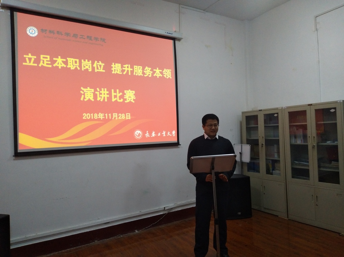新闻网讯(通讯员邹绍岩)2018年11月27日下午13时30分,公司党委在材料楼5楼党员活动室开展了“立足本职工作岗位提升服务师生本领”演讲比赛。公司全体党员参加了活动。党委班子成员担任本次比赛的评委。此次演讲比赛活动由党委专职组织员邹绍岩主持。
