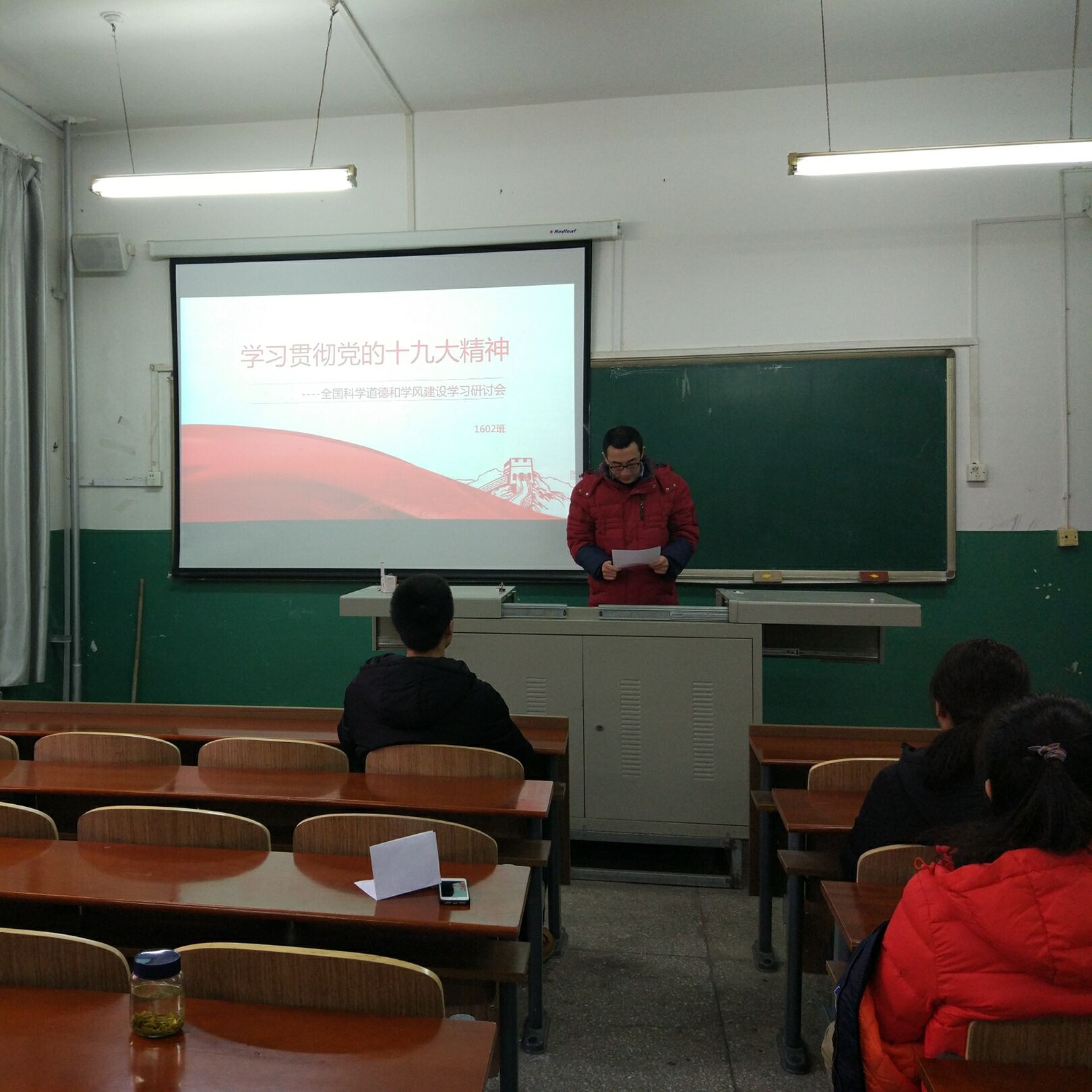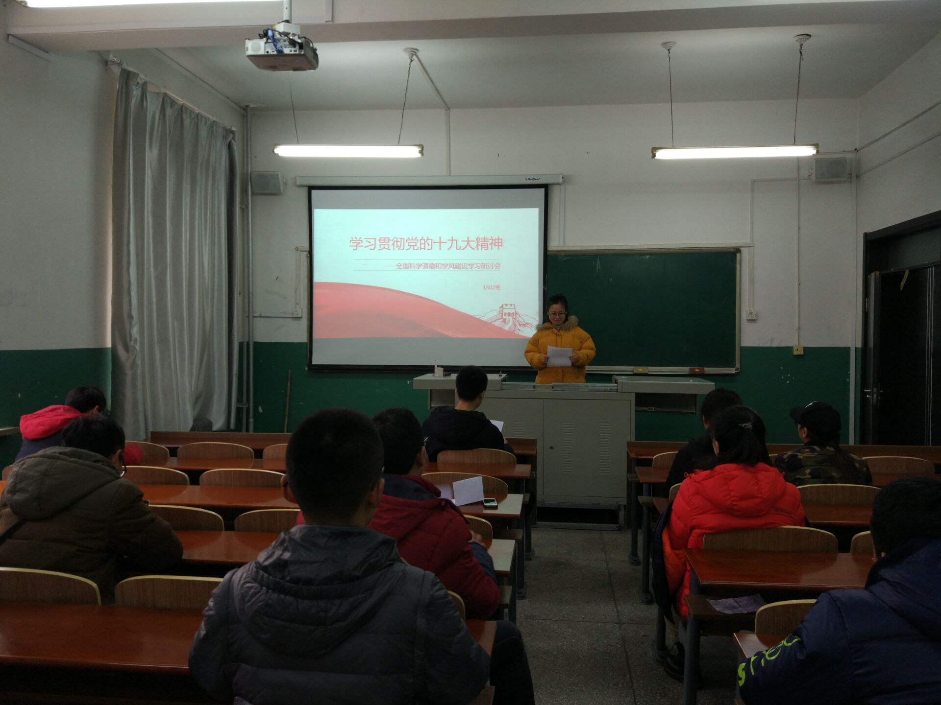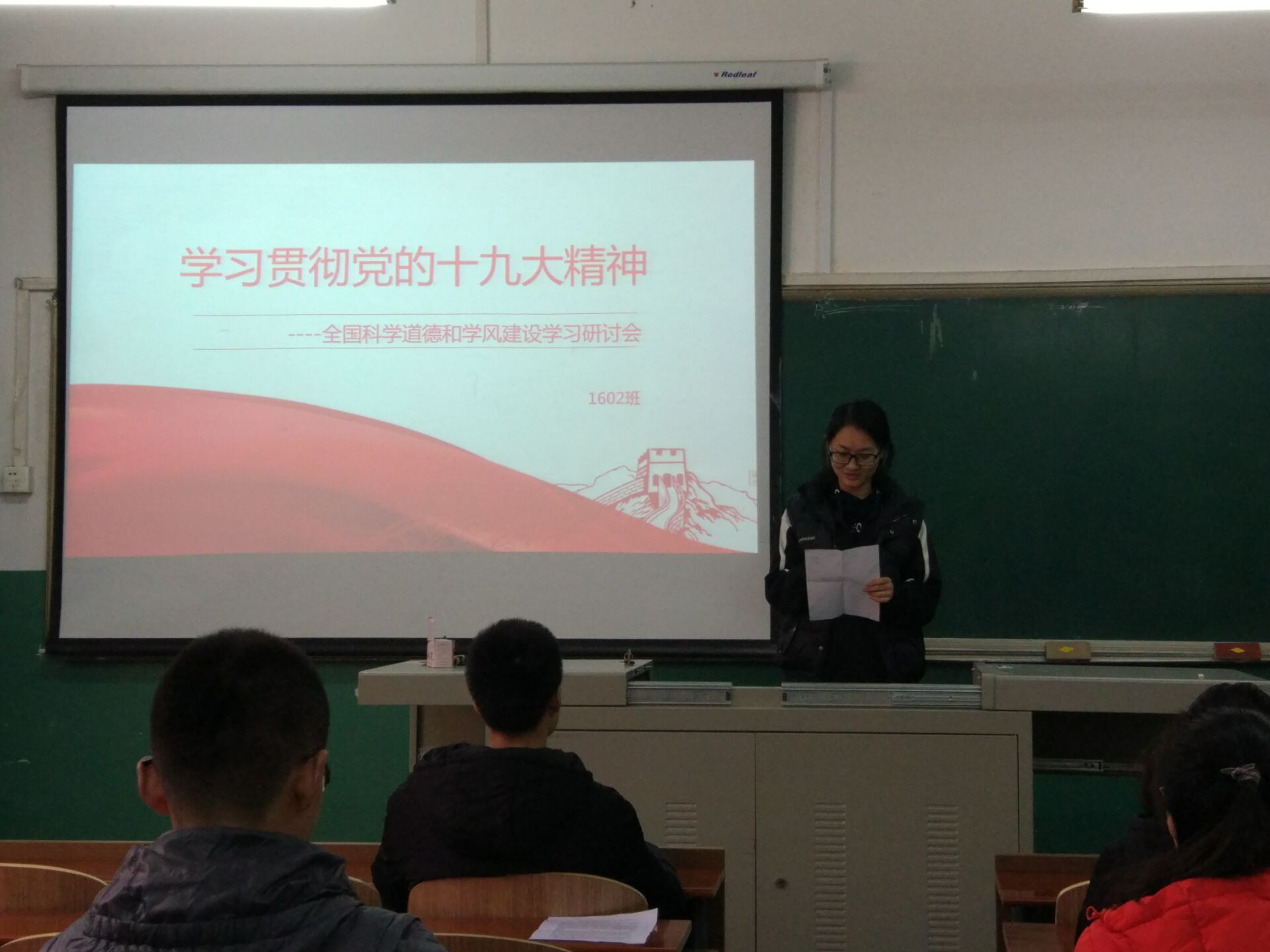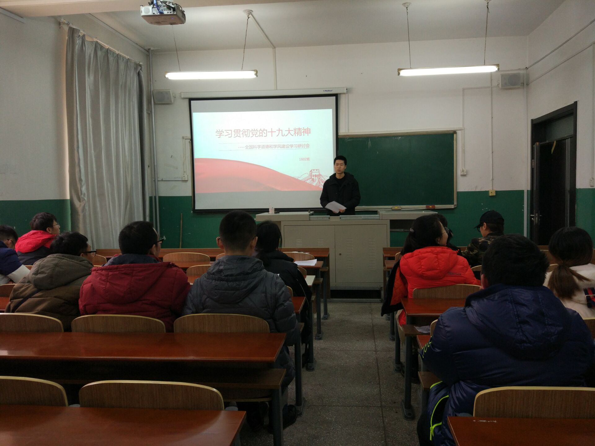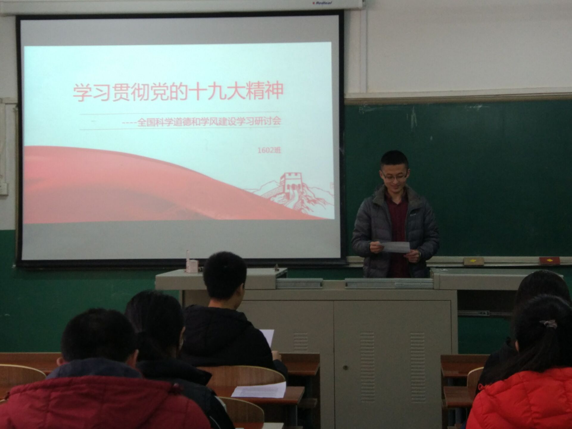 2017年12月7日,研究生201602班党支部再材料楼202举办了专题讲座,201602班全体同学参加了活动,材料科学与工程专业团支书王宇彤,积极分子高大伟、张莹,研究生员工会主席隋小波,研究生团委副主席张上达5位同学做了题为“学习贯彻党的十九大精神-全国科学道德和学风建设学习研讨会”的专题讲座。