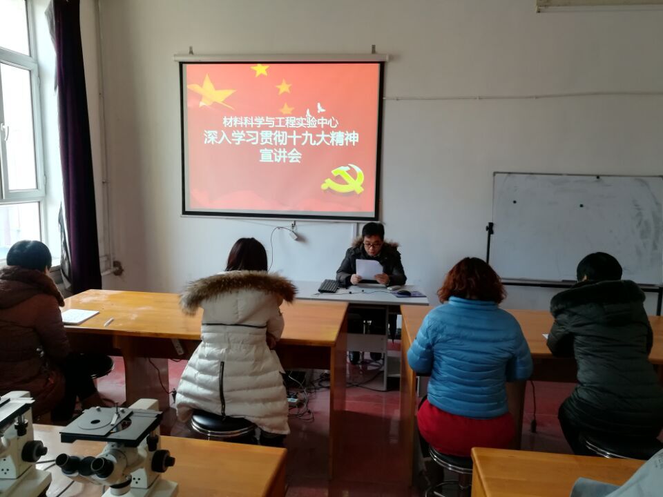 2017年12月6日,实验中心党支部在实验中心多媒体教室举行了专题讲座活动,实验中心全体教师参加了会议,实验中心党支部书记李于朋作了《新时代 新使命 新要求》的学习十九大报告专题宣讲。