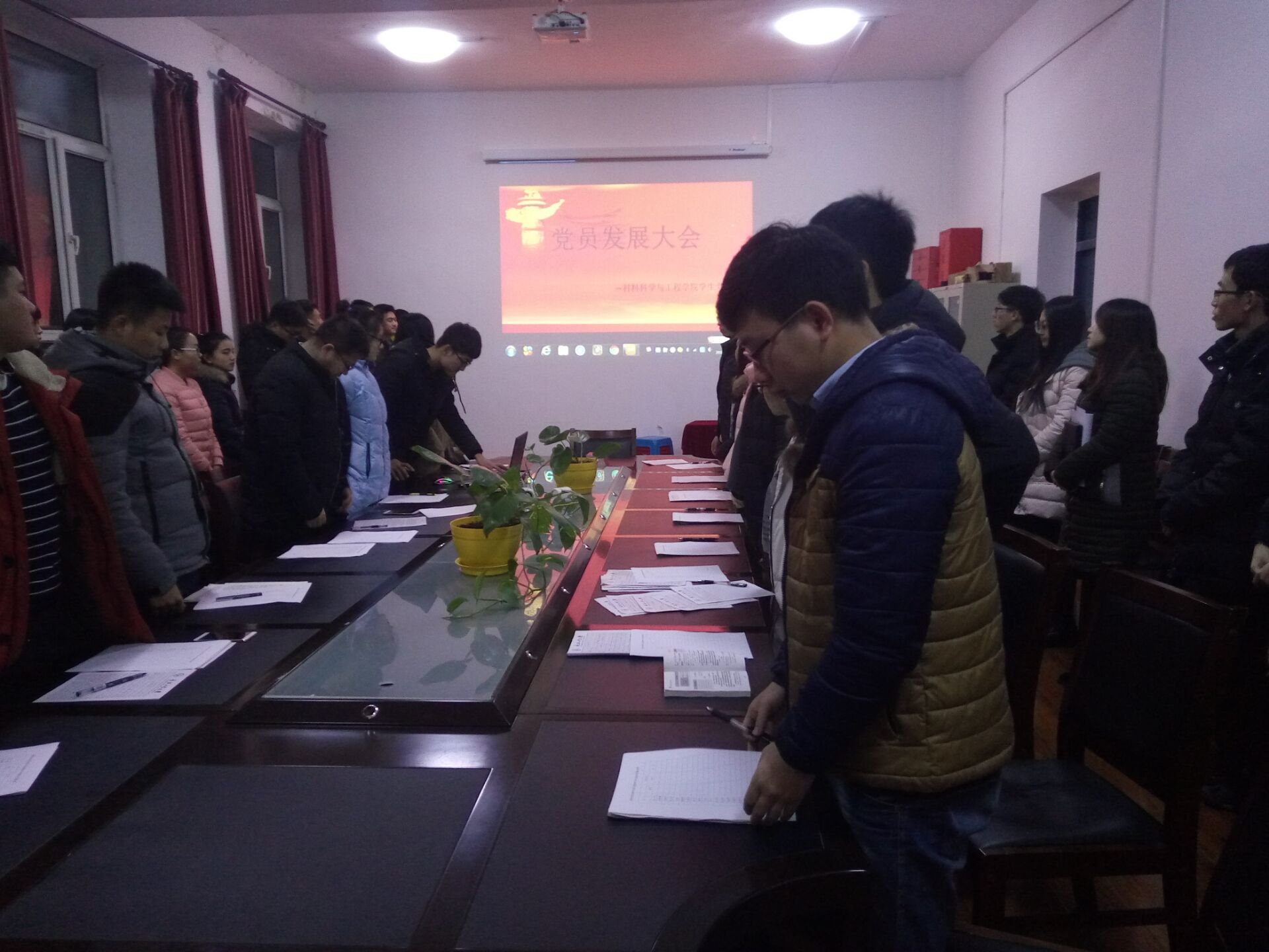 会议第二项,由19名发展对象汇报个人情况及宣读《入党志愿书》,汇报后,由每名同志的入党介绍人就其现实表现和培养考察情况,并对其能否入党、本人是否同意其加入党组织表明意见和态度。