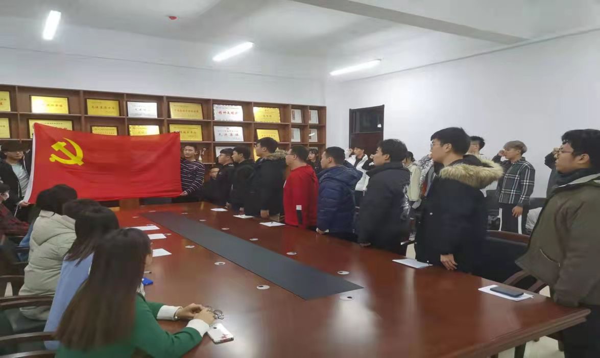 进行会议最后一项,预备党员同志们,面对党旗进行庄严宣誓。