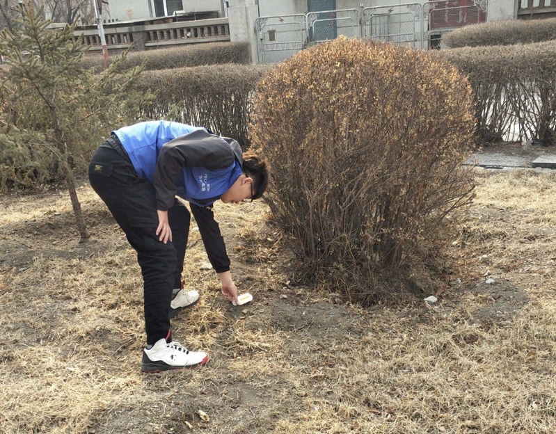 同学们身穿志愿者服装,开始了今天的活动,从EMC易倍出发,围绕公司一周,清扫垃圾并且主动拾起被人丢在垃圾桶外面的垃圾,同学们认真发扬“无私奉献,全心全意”为大家服务的精神,让校园环境更加美好。