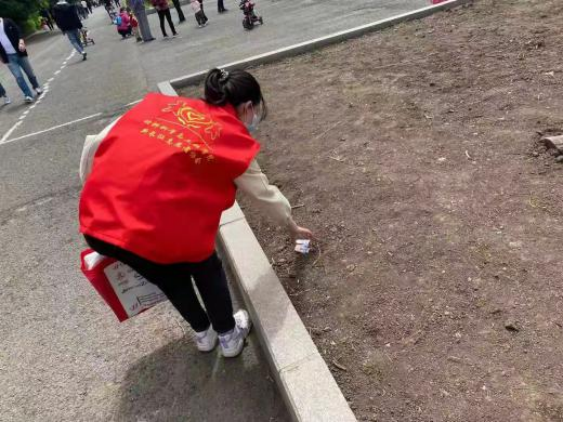 在这次活动中,志愿者们先清洁南湖岸边的垃圾,然后再向大家宣传环保绿色出行理念。志愿者们不仅身体力行,清理南湖湖畔垃圾,而且向路过的游客宣传环保绿色出行的理念,扩大活动的受众面,增强活动的影响力。