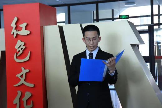 员工代表吕梓源代表员工发出倡议,作为青年老员工,我们要不断学习党的光辉历史,从自我做起,从每一天做起,一步一个脚印,一步一个台阶,以锐意进取、永不懈怠的精神状态,向着实现中华民族伟大复兴的中国梦奋勇前行。