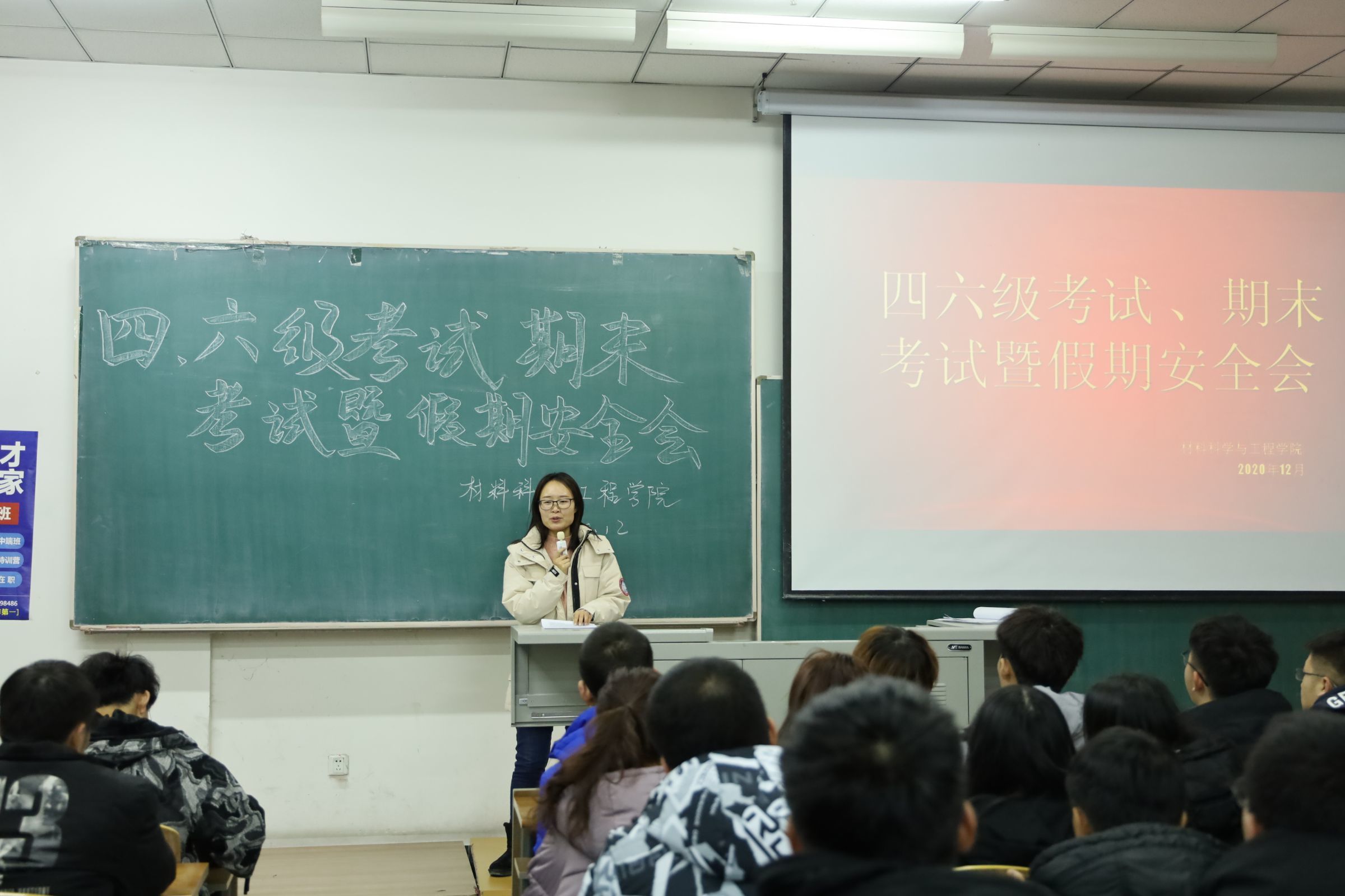 材料网讯(通讯员 宋彤)2020年12月10日下午5点50分,EMC易倍在北湖校区主楼1201教室,召开四六级考试期末考试暨假期安全会。19级辅导员李爽老师及2019级全体同学参加了会议。