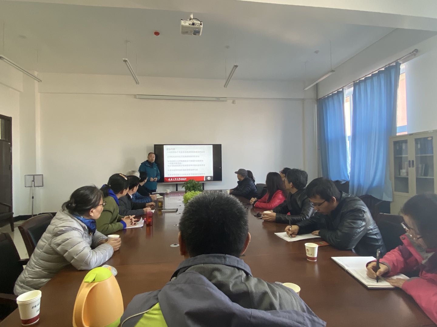 会上党委书记兰民教授就课程思政的提出背景和重要意义及教师应该担负的使命做了指导性讲话,要求教师全员、全课程都要都要有思政意识。