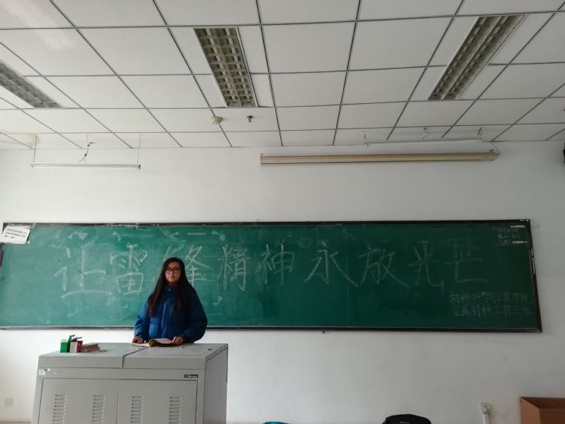 活动通过各班级同学们朗诵雷锋同志日记,讲述自己所了解的雷锋同志的先进事迹,介绍自己知道周边开展的深入贯彻雷锋精神的以“关爱他人,关爱社会,关爱自然”为主题的实践活动,宣传和弘扬“奉献他人,提升自己”的志愿服务理念,并各自展示了自己理解的雷锋风貌。