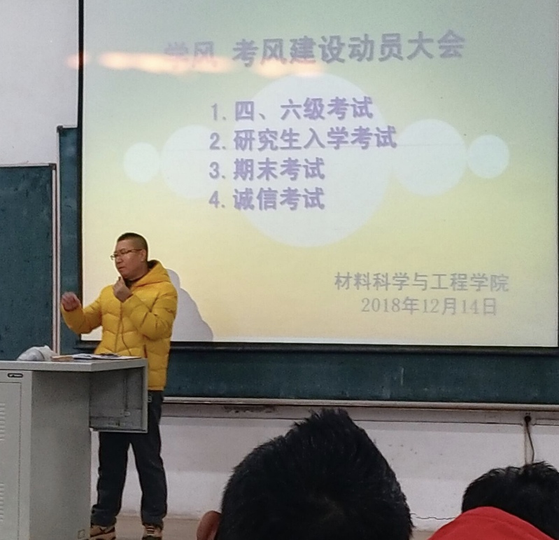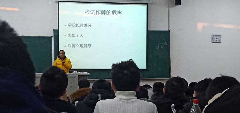 最后,吴书记对18级全体同学抱有殷切希望,告诫同学们不要荒废了大学四年的美好年华,希望同学们认真复习,用自己的真实水平考出风采,取得优异的成绩。通过本次大会,同学们定会将诚信考试牢记心间,遵守考风考纪。