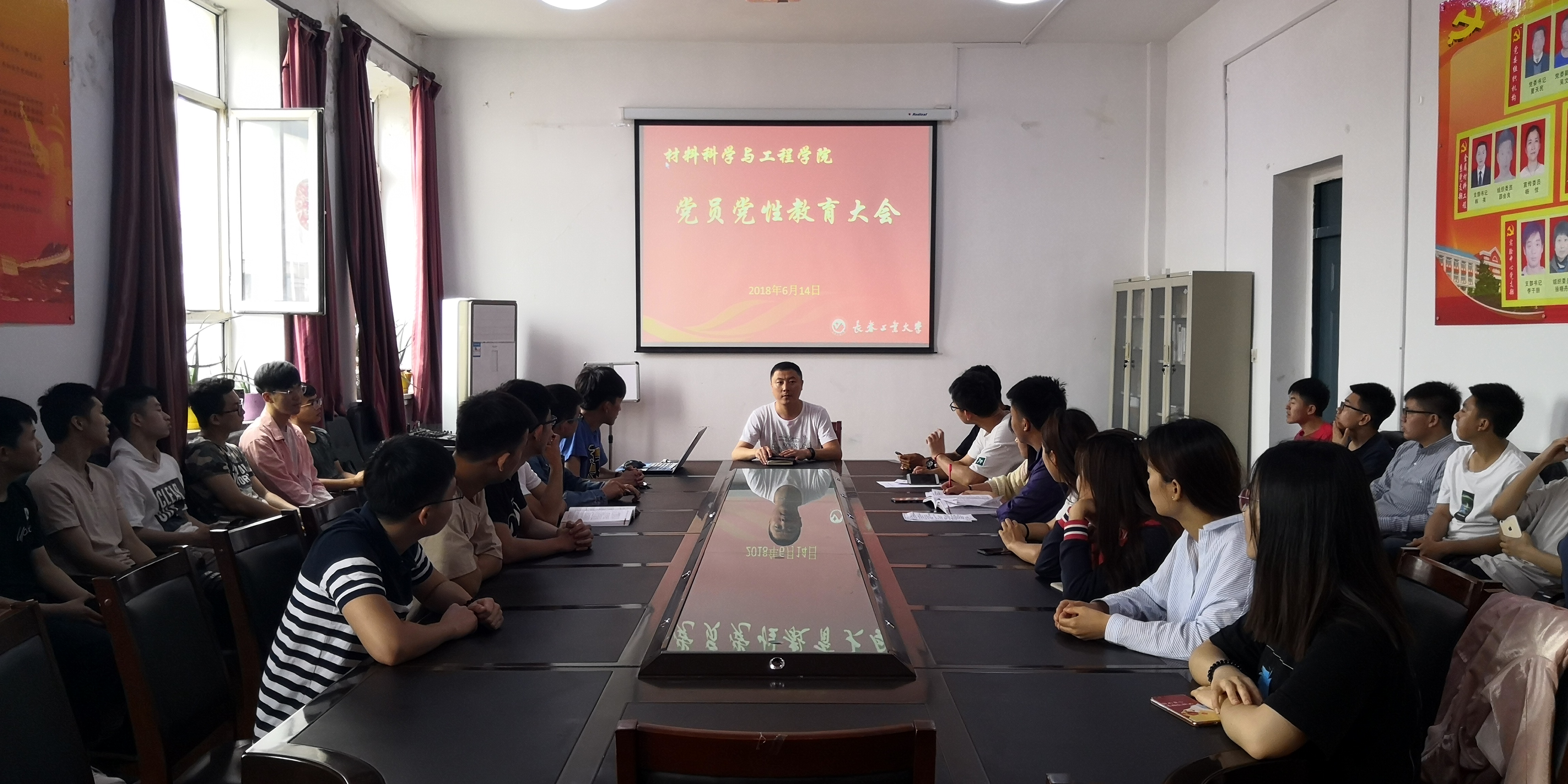 新媒体(通讯员 刘昭希)2018年6月14日,在EMC易倍五楼会议室召开了2015级党员党性教育大会,由邹绍岩主持,2015级全体党员、预备党员、积极分子参加会议。
