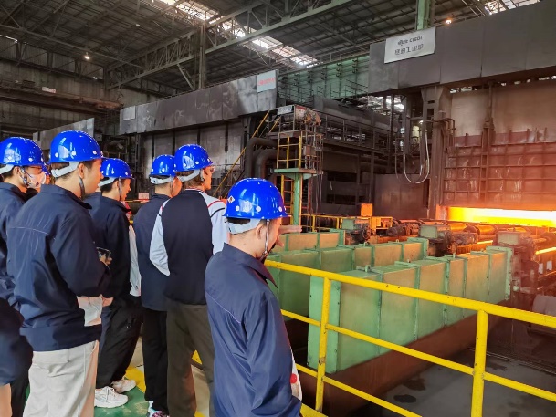 培训结束后,蒋处长和车间相关负责人带领同学们前往冷轧厂和热轧厂进行参观实习,近距离感受了冷轧、镀锌、彩涂、高温粗轧、精轧、层流冷却等在公司无法见到的生产场景。参观过程中,同学们就钢铁冶炼、轧制、自动控制、设备参数等相关问题与车间工程师进行了充分交流。