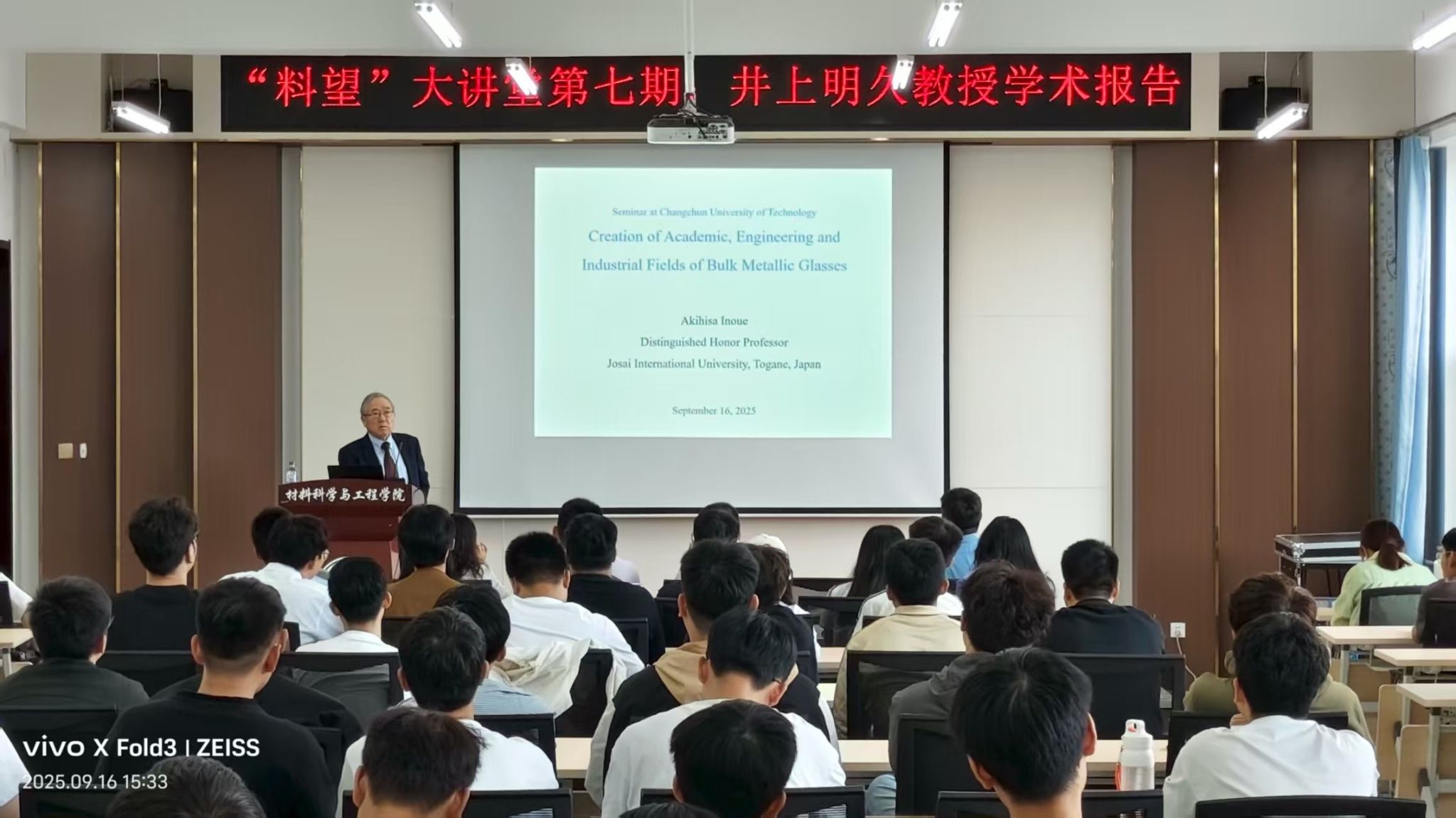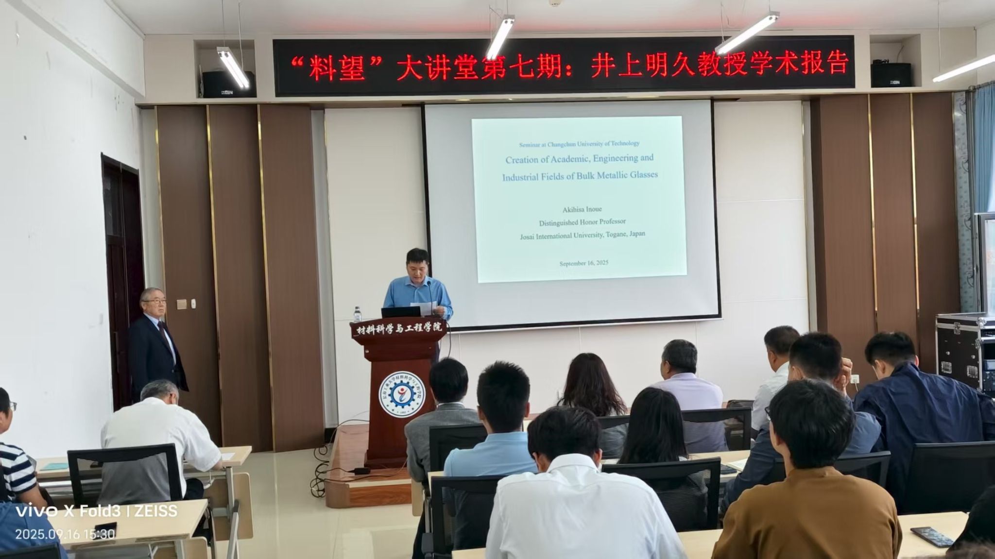 报告会上,井上明久教授从非晶合金的发展历程入手,以Zr基和Fe基块体金属玻璃为例,系统介绍了块体非晶合金的制备方法、结构特性与性能表现,并全面评述了其在生物医学、微电子、移动设备、传感器及磁性材料等领域的应用现状。通过井上明久教授的精彩讲解,有效激发了EMC易倍青年教师和研究生投身科学研究的热情,对培养材料学科研究生的科研思维具有积极的推动作用。此次学术交流活动也进一步拓展了EMC易倍的国际合作空间。