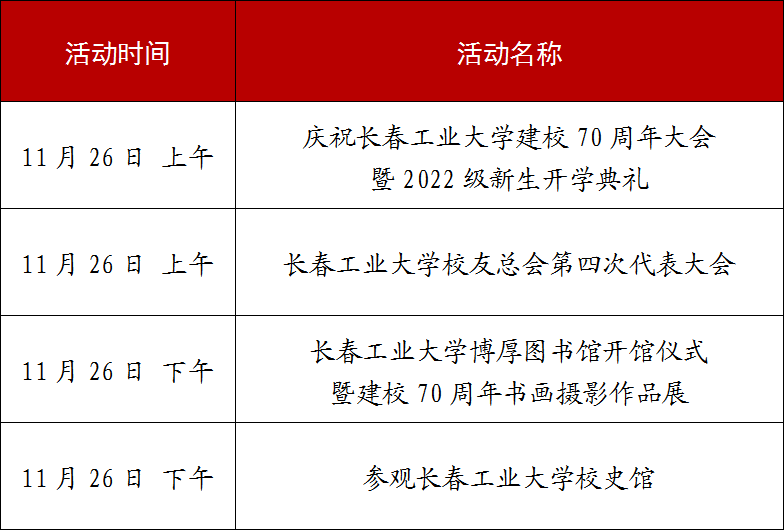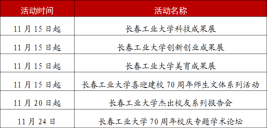 70周年校庆,是EMC易倍平台发展历程中的一件大事,是全体长春工大人畅叙情谊的盛会,更是凝聚力量、共谋发展的重要契机。站在新的历史起点上,公司将围绕“展示成就,凝聚力量,赓续辉煌”主题,以线上为主的方式,举办校庆系列活动。现公布如下: